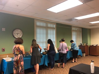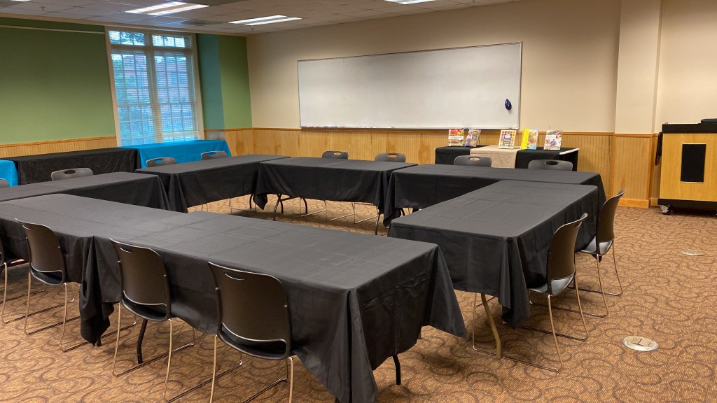 These events require a lot of effort and staff time! Set up takes longer than you would imagine, and clean up takes even longer. For planning purposes, I would recommend factoring in at least an hour before and after the meeting for prep and striking.
